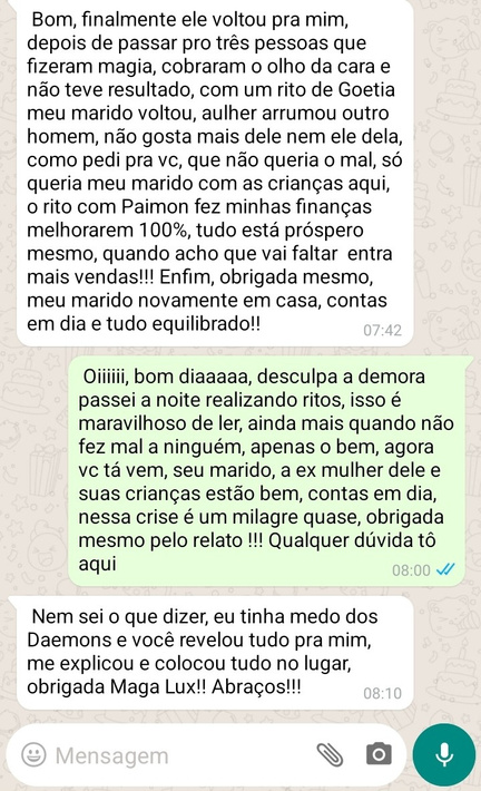 "Eu não escolhi esse nome, esse nome escolheu a mim, Venuz sempre foi a parte mais artistica e viva da arte da magia goeta em mim, Lux é a sabedoria, unindo os dois, é a Luz do amor, conheci a Goetia, a com ajuda de Paimon me levantei e tive minha honra novamente, abrindo os caminhos da magia, minha vida amorosa melhorou com a ajuda de Sitri e nunca mais tive dificuldades financeiras, nem noites em claro pensando em como pagar as contas com a ajuda de Bune.